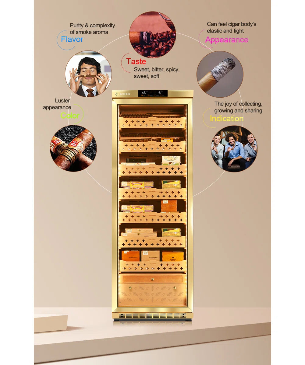 - STORE&AGING: The cabinet has build-in humidity, fan cooling, PTC Heating & dehumidify system which contributes to a constant temperature and humidity environment to keep your cigar at the best status. Perfect for storing and aging
